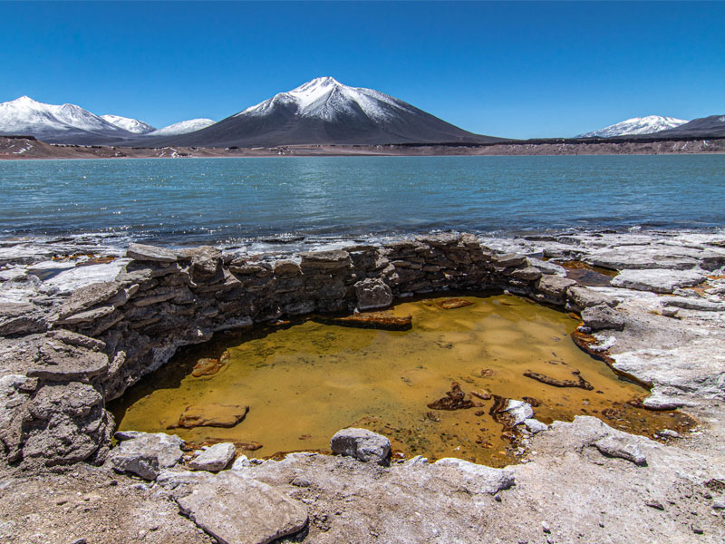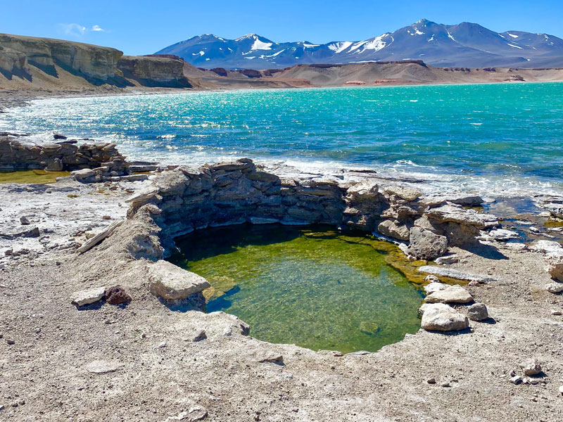 Sus aguas poseen una alta concentración de sales y minerales, lo que impide la vida acuática, pero crea un espectáculo visual único. Rodeada de profundos barrancos volcánicos y terrenos áridos, su entorno es ideal para el trekking, la observación de aves y la exploración de aguas termales, que brindan una experiencia de relajación en medio del desierto andino.