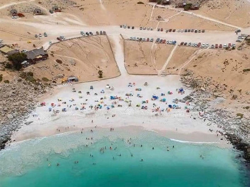 Ubicada en la Región de Atacama, a 68 km de Copiapó, Playa La Virgen es un destino exclusivo de aguas turquesas y arena blanca, protegido por formaciones rocosas que le dan su nombre. Su forma de herradura la resguarda del viento y las corrientes, creando un entorno ideal para nadar y relajarse.